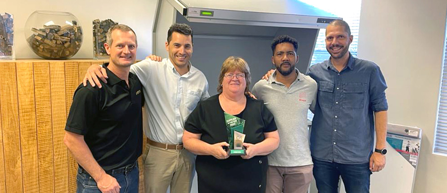 “Supplier of the Year” award, presented to Wilma and the Cape Town team by Colour Tone Aries.